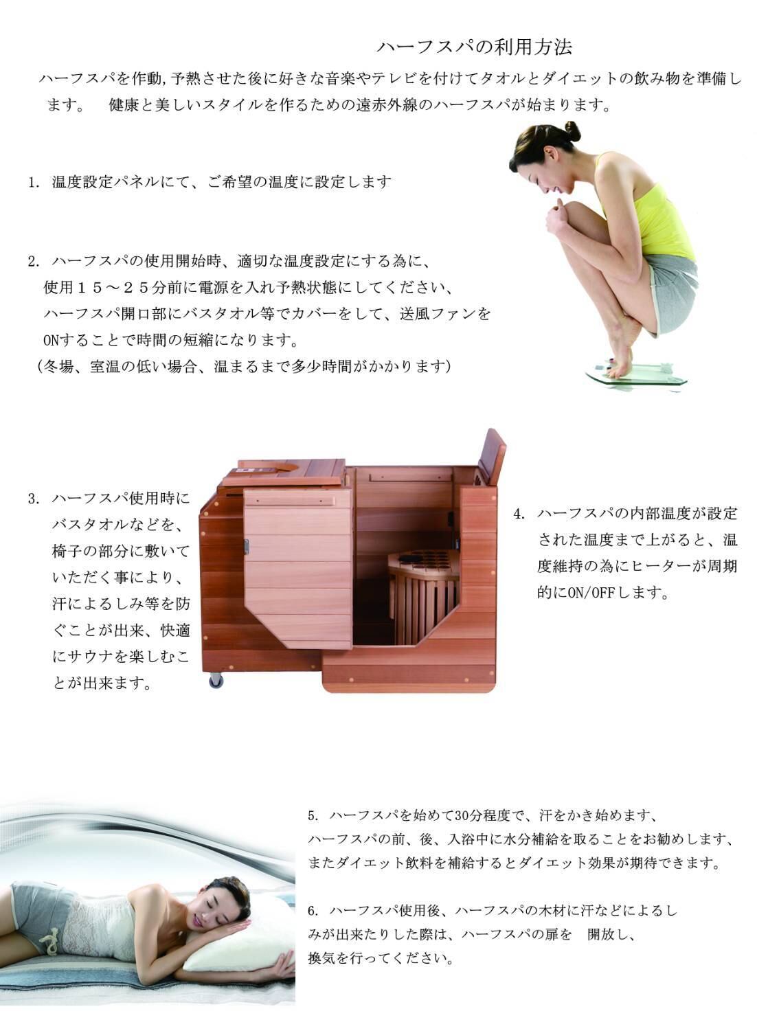 遠赤外線半身浴サウナ「ハーフスパ」。遠赤外線の輻射熱で服を着たまま半身浴効果を得ることができます。冷えを解消し血行を良くする半身浴サウナ「ハーフスパ」を、美容、ダイエット、健康生活にお役立て下さい。